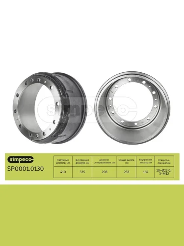 Барабан тормозной MAN TGA F90 F2000 M2000 передний (410х180х187мм H=232мм) SIMPECO в Омске Омской области