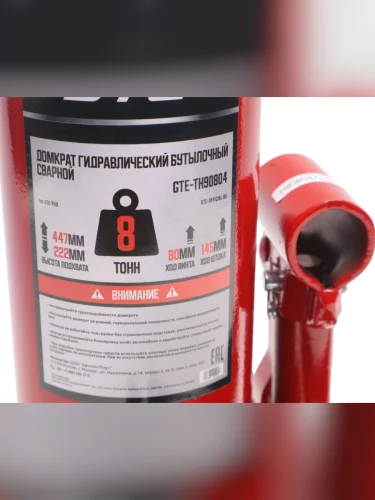| Наименование | Домкрат бутылочный 8т 222-447мм GTE в Омске Омской области |