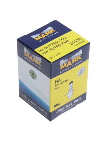 | Наименование | Лампа 24V H4 7570W P43t Original Pro OEM МАЯК в Омске Омской области |