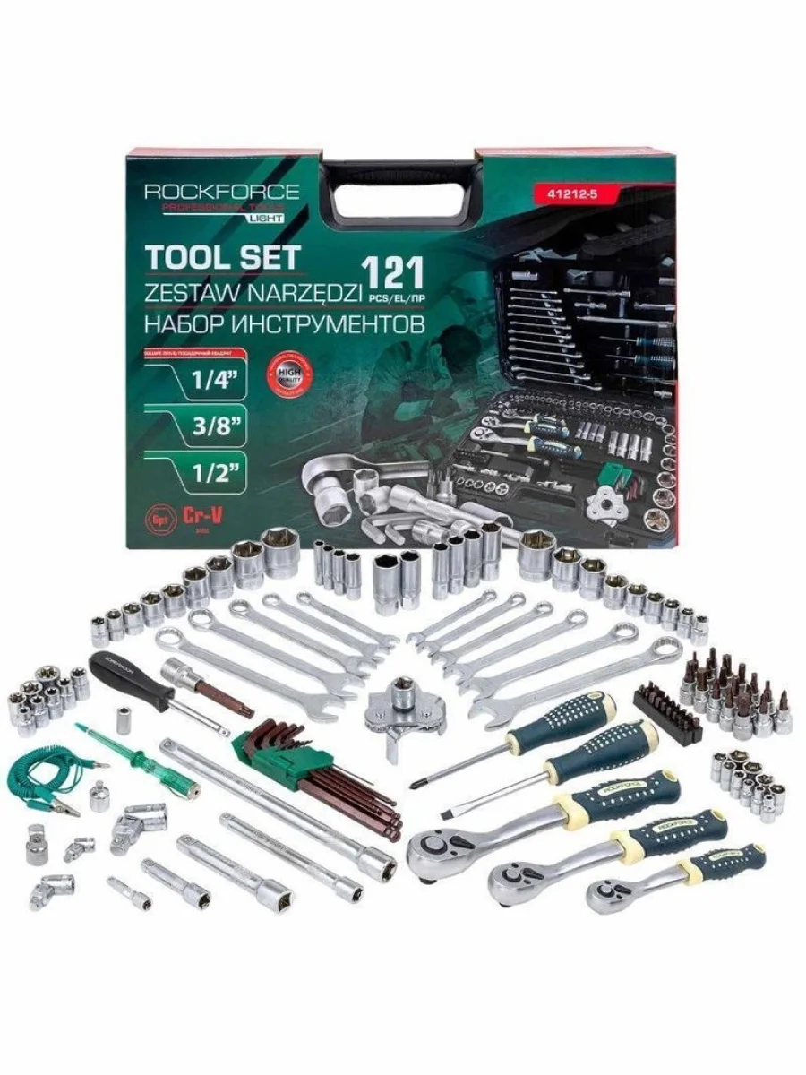 | Наименование | Набор инструментов 121 предмет слесарно-монтажный 12 14 38 6-ти гран в кейсе ROCKFORCE в Омске Омской области |